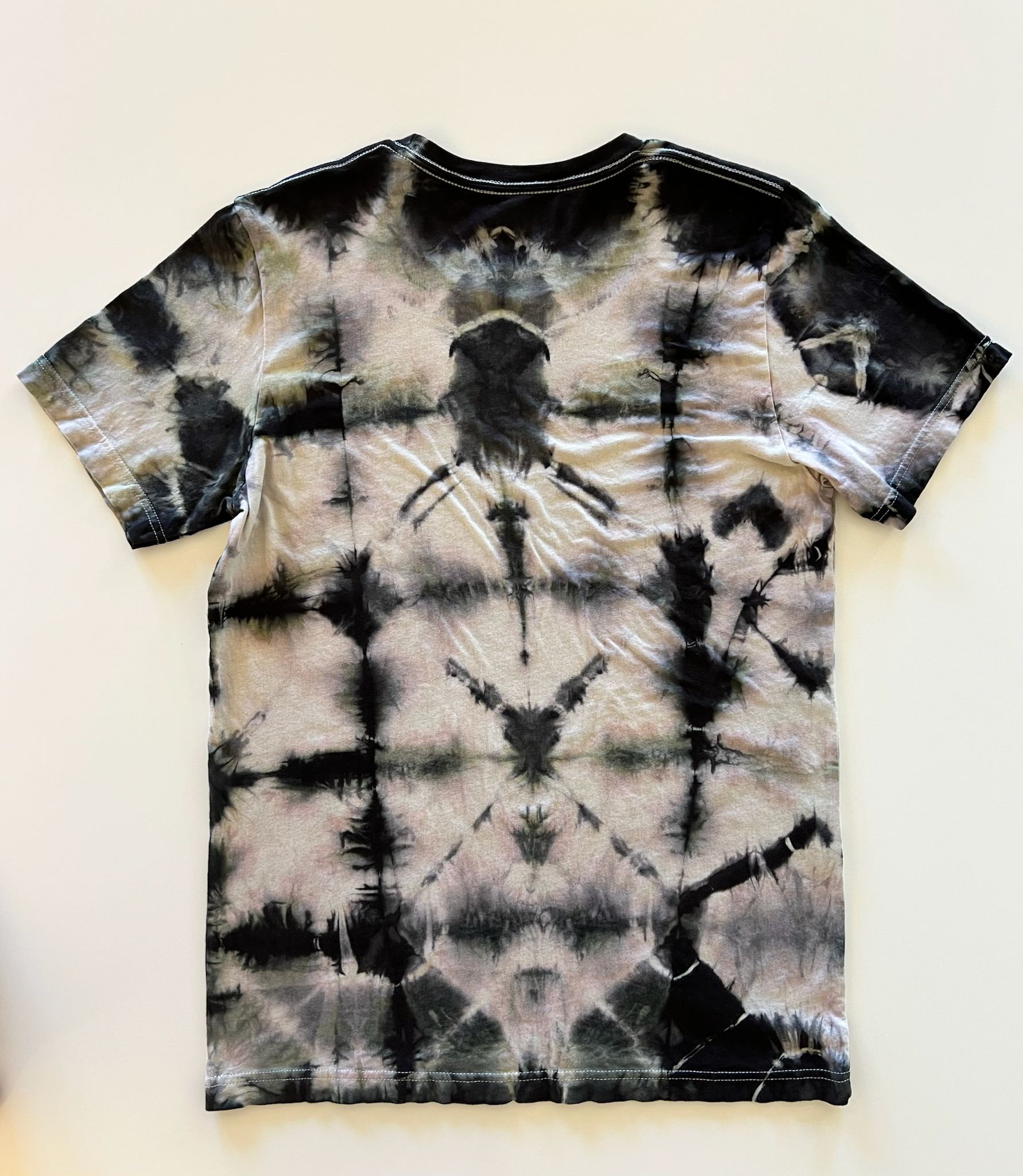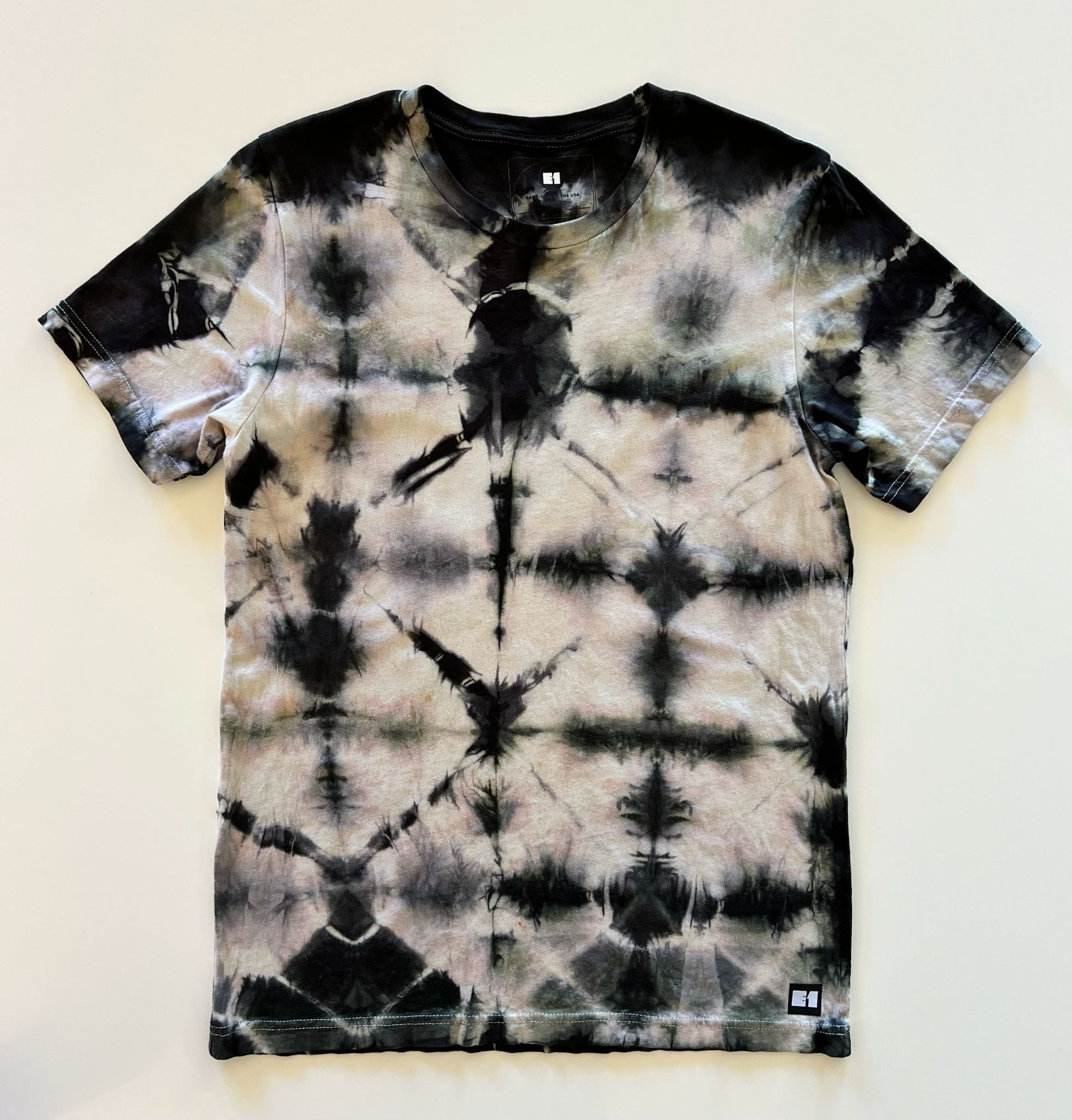 This piece began as a blank and was transformed using a centuries-old Japanese dye method that creates intricate, organic patterns. I layered in the dye to achieve this Black Hole color palette.