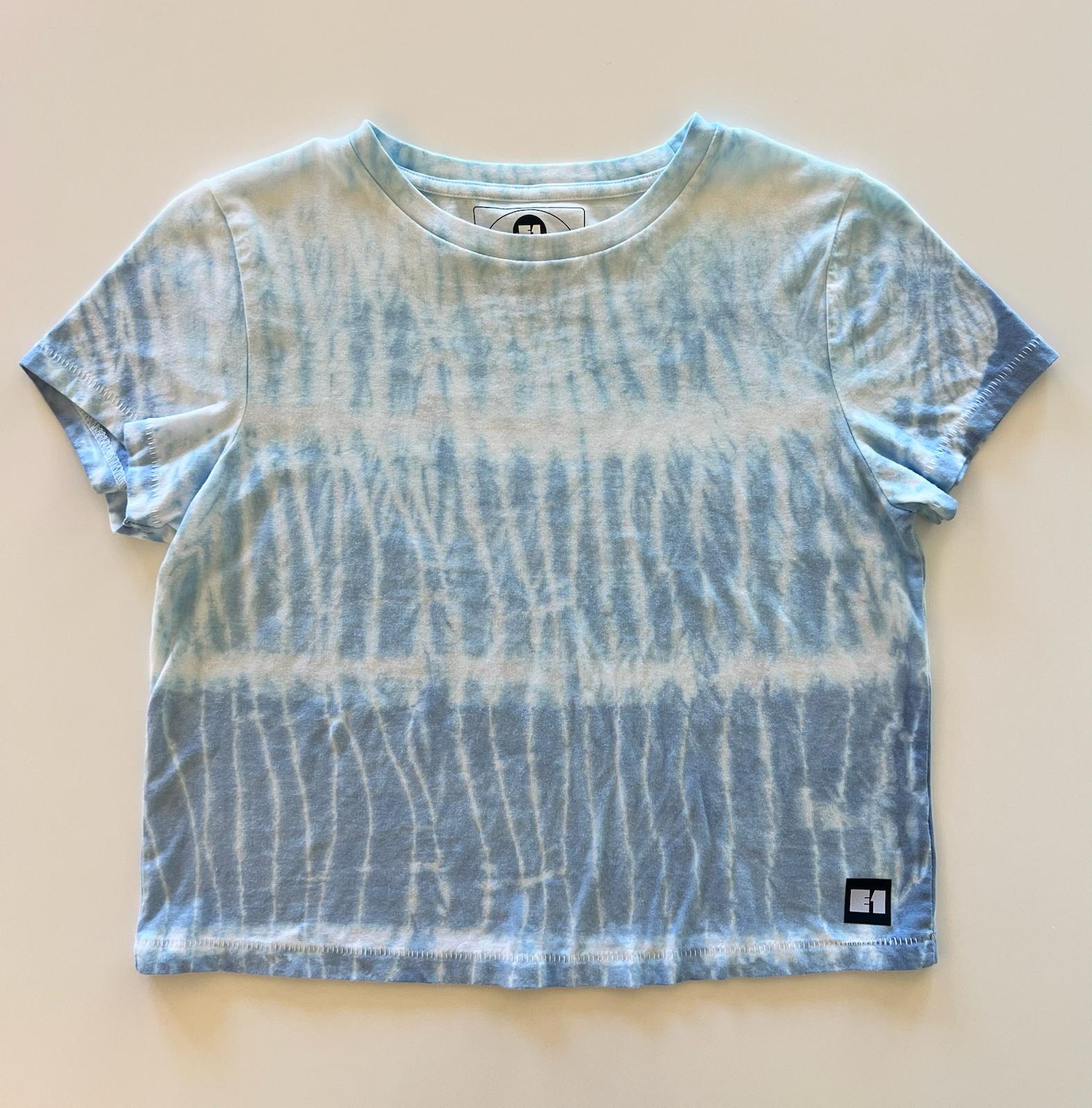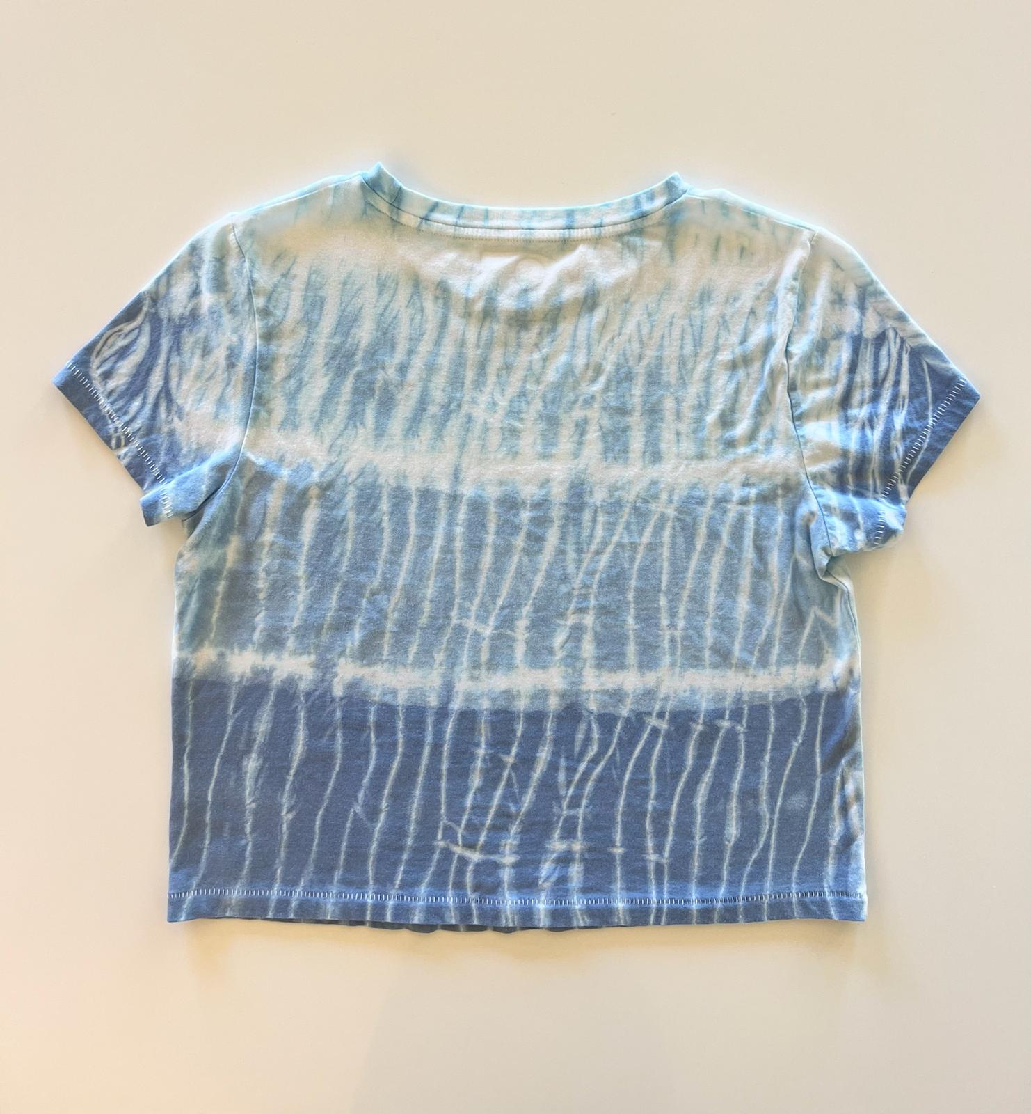 This piece began as a blank and was transformed using a centuries-old Japanese dye method using rope that creates intricate, organic patterns. I layered in the dye to achieve the Waves color palette.